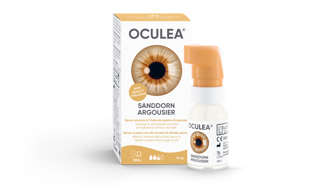 - en combinaison avec le spray oculaire OCULEA® ARGOUSIER ou les gouttes oculaires hydratantes